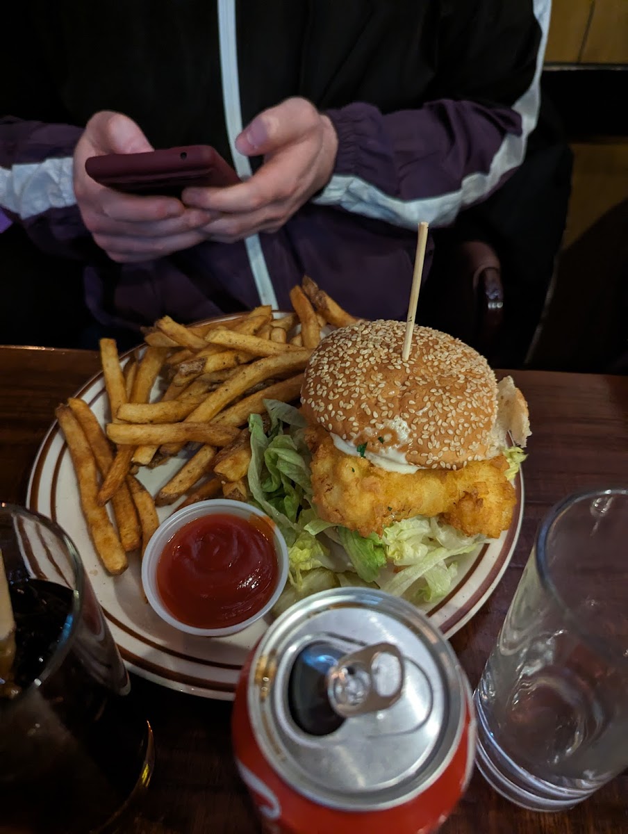 This place looks like a dive but the grub is good. Hubby and family have dined here before and a few of them rave about the Mac & cheese. Perhaps I'll try that next time. It was bit late (around 8 pm) when hubby and I went. There was a line but they got it going pretty quickly. We were sat in about 10 minutes. Our server was accommodating and friendly. Hubby ordered one of the beers on tap while I requested for some cold water. I opted for fish and chips while hubby ordered their chicken sandwich. His came with the house chips while mine came with fries. His was supposed to have been swapped with fries. His was not quite right but he still thought it was good and didn't bother to get it replaced. As for my fish and chips, some of my fries were too overdone to my liking. I thought the food was decent but could have been better. The vibe was good, music reminded me of my former band's repertoire in the early 2000s. Their decor is Big Lebowski-inspired. They are popular with locals who just want to hang. Prices were reasonable for Portland standards. Will give them another try.