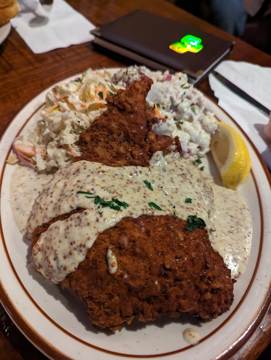 This is such a fun stop for a great price for brunch and wonderful cocktails. Our service was impeccable (cant remember her name she had black hair and was so nice) The smash burgers were my favorite in town with the soft sesame bun and bearnaise sauce with the crispy patty. Close to everything and no wait mid day on Saturday as well. 10 out of 10.