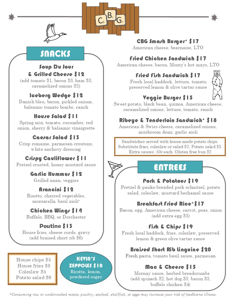 CBG - Portland Menu
